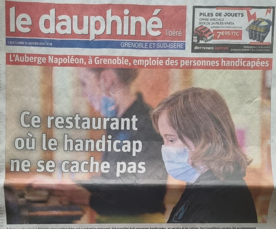 Lien de l'article complet : https://www.ledauphine.com/societe/2022/01/09/l-auberge-napoleon-le-resto-ou-les-personnes-handicapees-ont-toute-leur-place
